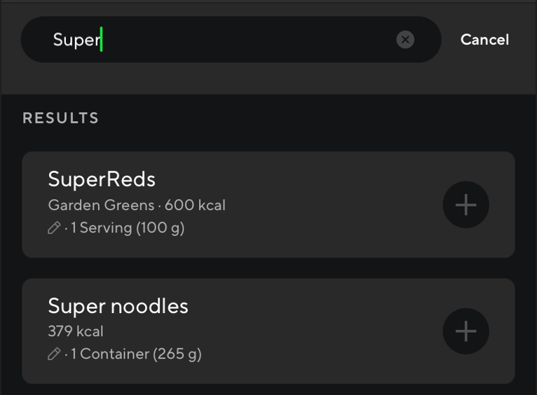 Wenn Sie Nahrungsmittel eintragen möchten, die kein Barcode besitzen, zum Beispiel Gemüse oder Früchte, können Sie mit der Suchfunktion der App das passende Nahrungsmittel finden.
